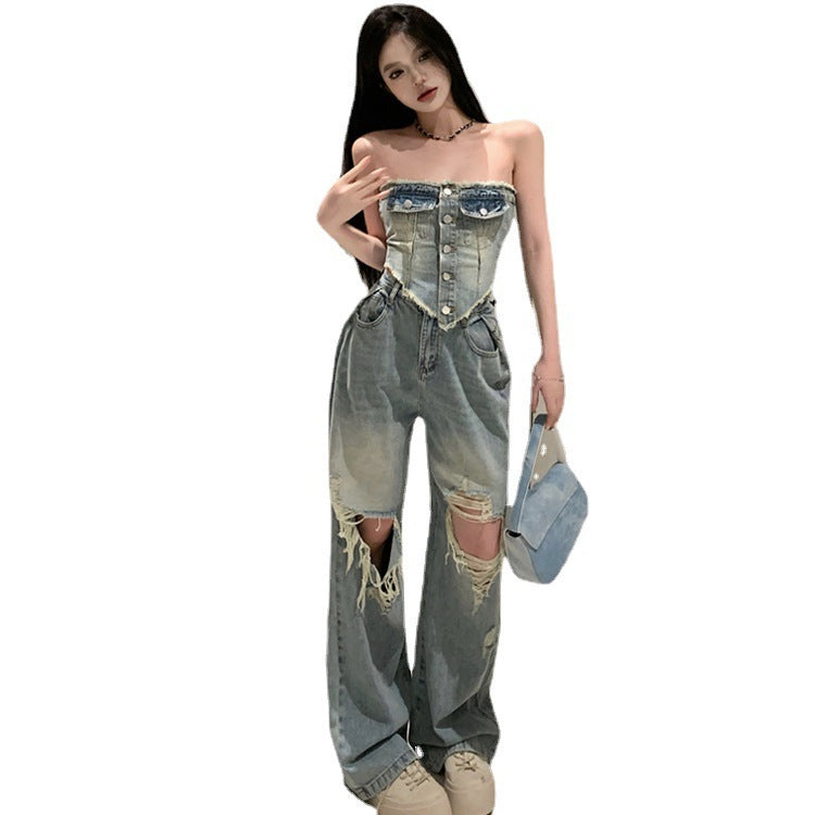 Color: D3-0657# denim jacket, D3-0658# denim trousers