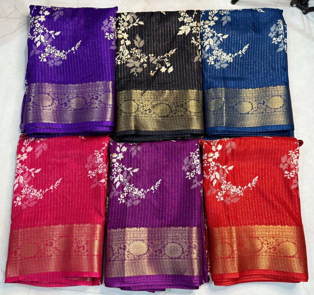 Beautiful dola silk sarees with all over floral design along with contrast weaving border