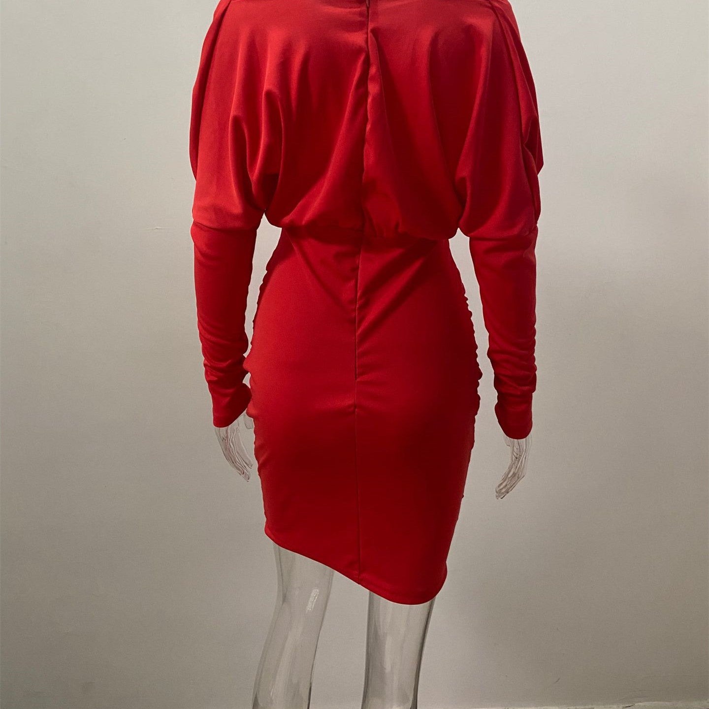 Long Sleeve V-neck Sexy Waist Bag Hip Dress - ANIBEY