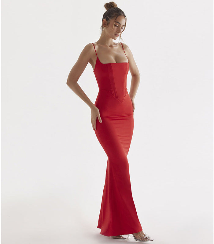 Women's Slim Fit Spaghetti Straps Sleeveless Tube Top Dress